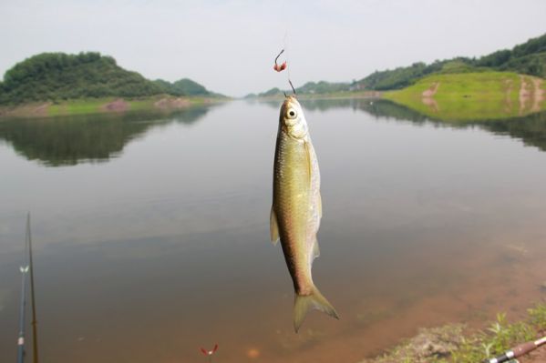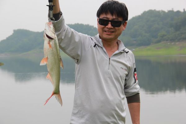 吃完早餐告别农家院返回五星码头老钓位支开家伙开钓,同去钓友已经钓了两条鳜鱼了,咱一条也没钓到心有不甘啊,这次来长寿湖也是觉着这里有鳜鱼要不然可能就去升钟湖了,开杆又是鲢鱼 心想这可瞎菜了,不定哪位把酸了的窝子打进去了没辙了时间不多了 钓位也懒得换了,鲢鱼就鲢鱼拉着玩儿了,钓着钓着猛的一个黑漂 抬杆感觉不一样 原来是一条红尾