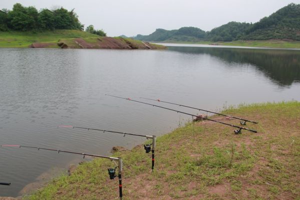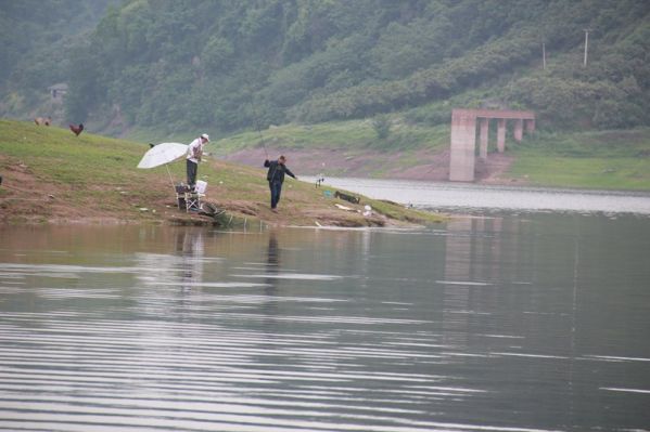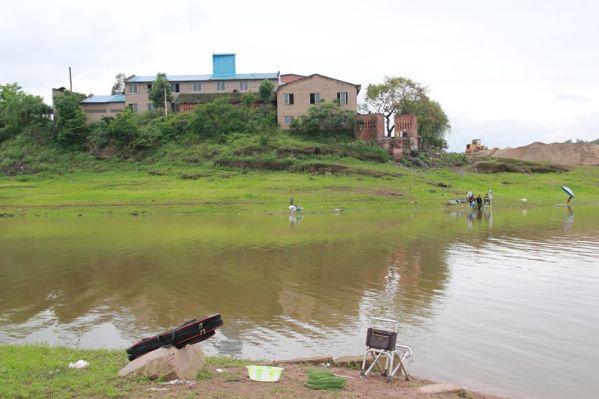 对面就是农家乐的房子,自己没带钓椅用的小龙的,所有渔具一个竿包全部囊括。