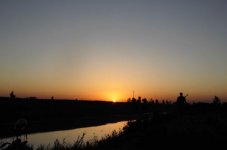 不知不觉中,心仪已久的“打渔张”河映入眼睑。我赶紧选点定位,支竿做窝,挂饵抛钩。浮漂稳稳地立在水中。我想,鱼没有那么快就过来。等待聚鱼发窝的工 夫,我打量着钓位四周的环境。水面清圆,波纹潋滟。对面是一片稀疏的苇草丛,微风中摇曳多姿,婆娑起舞,偶尔有小鸟忽起忽落。不经意间发现右手边十来米处 一片蒲草丛中,有一个人头在攒动。