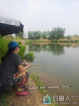 第二天,依旧送儿子去上课,然后又驱车来到了女儿河上游的那个野塘。到地方一看,已经有两位钓友(也都是相熟的朋友)在做钓了。赶紧献殷勤 的帮老婆支伞、架竿、拴线、调漂、找底、开饵、打窝、上食,然后耐心的教她如何抛竿,如何观漂,如何把握提竿时机,如何遛鱼等等,说的是头头是道,口沫乱 飞,听得老婆满眼睛冒星星,看来我这个家庭钓鱼第一高手还真不是盖的!
