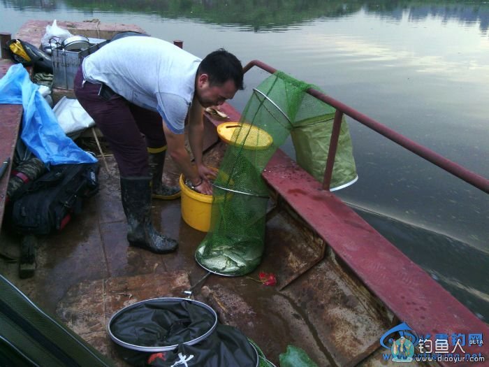 今天很累,我们都各自忙活了就睡着了,第二天早上四哥叫醒的我,可是外面下起了暴雨.完了,下雨怎么办呢.我又睡了.雨下了40多分钟,然后大家起来吃了 早饭,船老大送我们去钓场,很可惜,今天水涨了1米多,调位实在不好找,我觉得还是昨天那里,可是全淹了.我还是选择了昨天那边,不过离昨天调位至少有 10米.