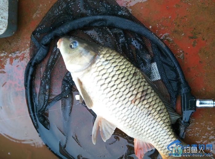 料。咋回事呢,今天的鱼不开口呢,9点多了,还没有一点动作。是饵料不对路?看见地上谁留下的新鲜玉米。拿来试试。不一会儿,一个顿口,一番较量,今天的第一尾有效鱼出水了。