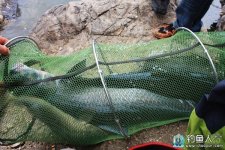 5等大鱼吐出大鱼星后,鱼就后侧翻,这时就可以用大抄网或搭钩将鱼提上岸。