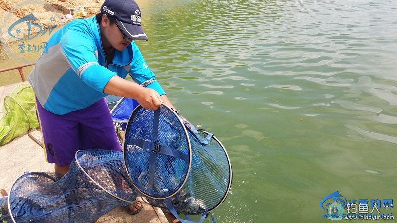 溜鱼中,请朋友来帮忙抄鱼。