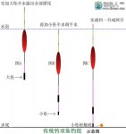 此方法用面饵,荤饵均可。这种调法钓鲫时送漂上升幅度大信号明显。