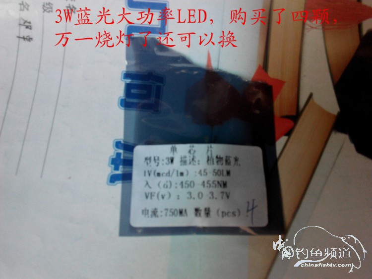 2. 3W大功率LED蓝光灯珠4个(只用一个)