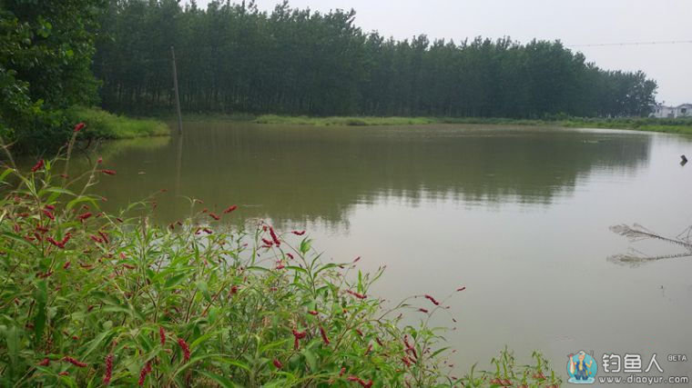 不一会来到塘口,仔细了解水情。得知靠近公路这一溜取土比较深,可惜岸边多树枝和电线,钓位顺势往北。