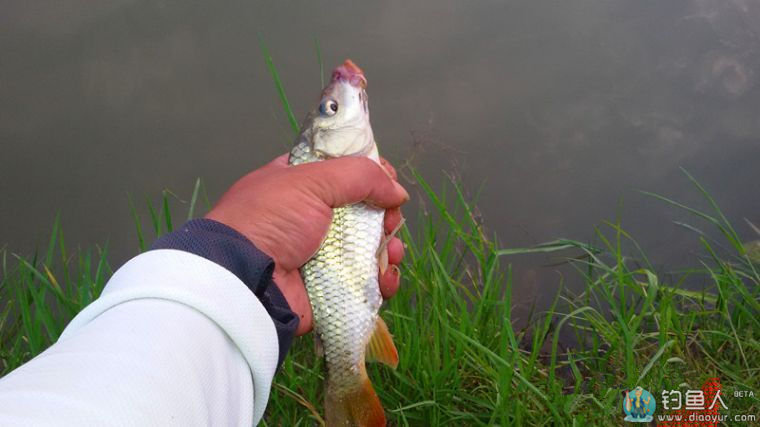 俺也没闲着,在表弟的钓位继续奋战。面对着忽上忽下的漂相,终于一个顿口,中了。凭手感确定鱼不大,果然,鲤妹妹来了。