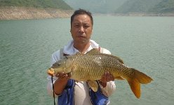 由于没有打窝,只带了两包嫩玉米饵,钓了九条鳊鱼,一条5.8千克的大鲤鱼。
