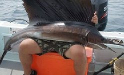 如果是小个体的雌鱼,而你有着熊大一般的身体,七八分钟吧,旗鱼入怀;而如果你的运气够好,赶上壮年的雄鱼,嘿嘿,加油吧!
