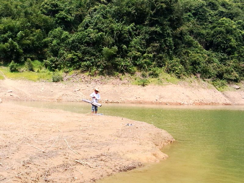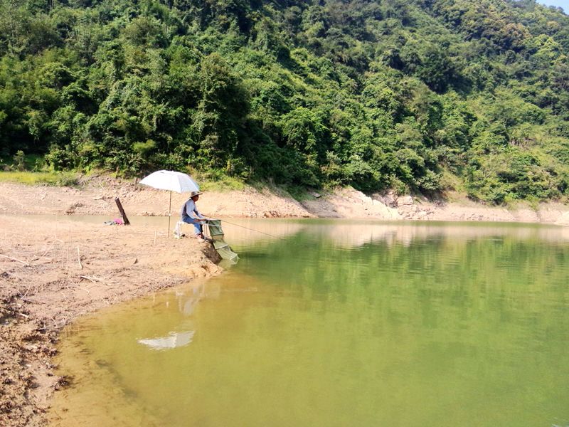 近岸了,我一眼就相中这个钓点,这里水位还是比以前爽啦的时候满了好几米,依稀还能记住大概的水底地貌。