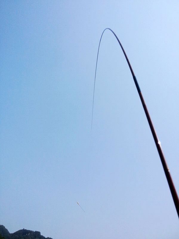 3.0米的傲竹伸出去漂离杆稍就三十多厘米,水深两米七。1+0.4的线,三号袖钩搓饵打底不停抛竿聚鱼,半小时后才有口,先上鲴鱼白条数尾。朋友那里突 然中大鱼一下就断子线,我还笑他,没想到接着我也中一个,0.4的子线2.7水深不到两秒就切了,大鱼绝对是大鱼,和朋友赶紧换杆。