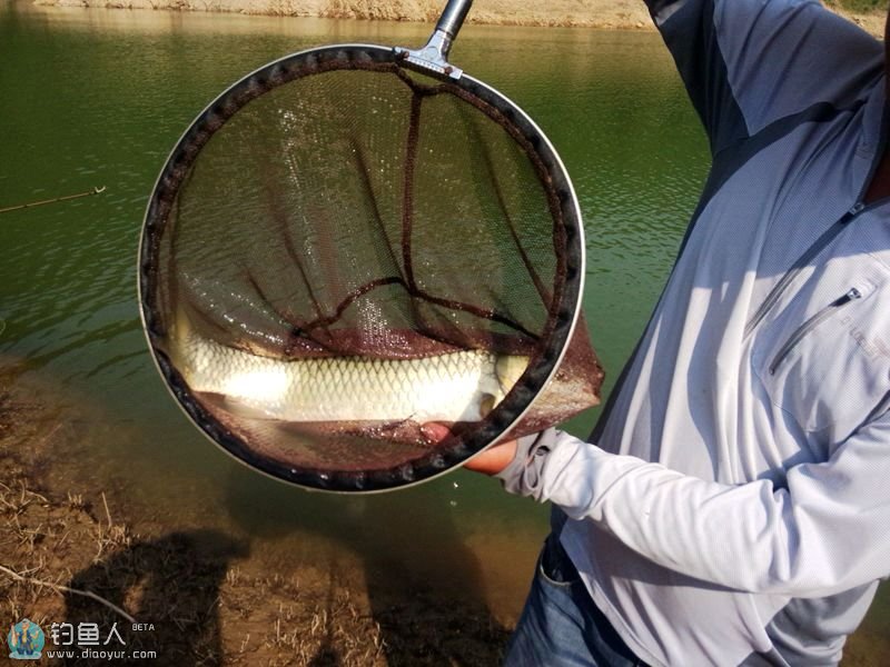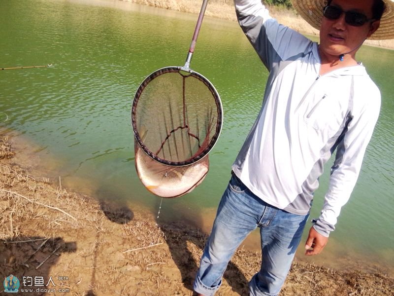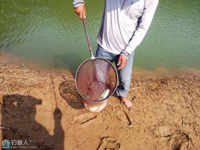 和鱼搏斗数个回合终于浮出水面了,朋友赤脚跑过来帮抄鱼,第一下没抄好,鱼突然外串吓死我了,幸好之同二代腰力强悍没把1.0子线崩断。