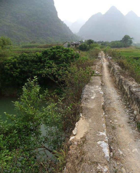 这是一个废弃的渡槽,水流已不存,早已成为前面村人的便捷之道。