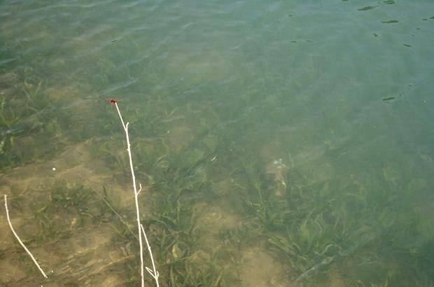 水深1米6,能见度太大,所以我喜欢沉坠钓——那悬坠,还是避不开鱼的双眼的。总之,岸边尽量不发出声响,水中尽量掩饰钓具!