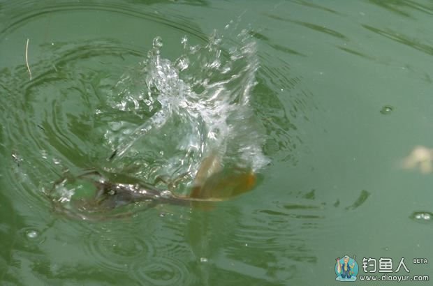 11点10分,浮漂缓缓下沉,漫不经心地提竿——噢,好沉!心一下就有点紧张了!