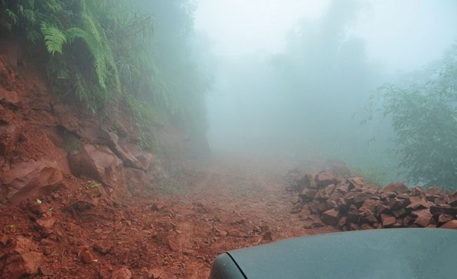 山区的气候变幻无常,昨晚飘了点小雨,泥泞的山路很是湿滑,挂上四驱继续高歌猛进。