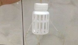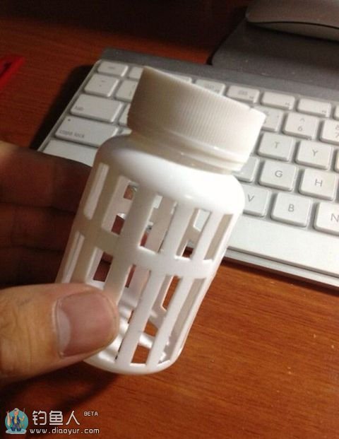 把钩子均匀分配到瓶身周围,底钩留了一个。把钓钩的线集合,打结,让线结处于瓶盖下方,这样瓶身就不会滑落了。剩余的线绑上连接器,就完工啦