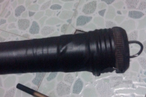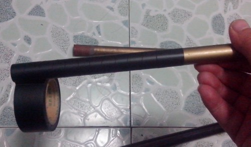 拿下后堵,在鱼杆后15CM处缠上绝缘胶布,当做把手。