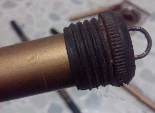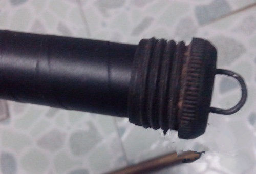 后堵失手环已丢失,所以决定手工安装一个失手环,备好一根直径1.5MM左右的铁丝。