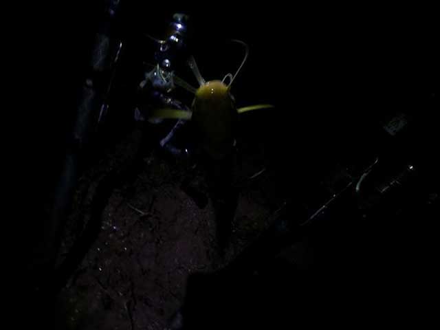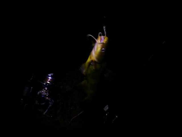 每年的这个时就是钓花鲹的开始季节,那么,这次也带上了花鲹最喜欢的饵料。也许是水底草多之故,至始至终都没有看到花鲹的影踪。最终迎来了慢呑呑的黄货。