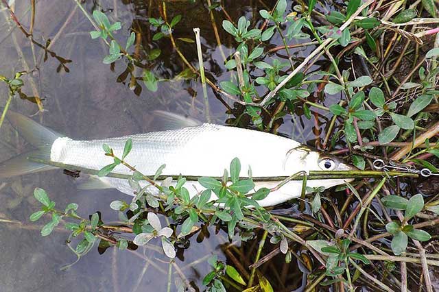 码头左边湾子很大,鱼多,专门增设了一个护鱼点,湾子的尽头涨水淹了很多田土,手杆垂钓见不到底的浅水有效果,钓粑粑优于曲算。