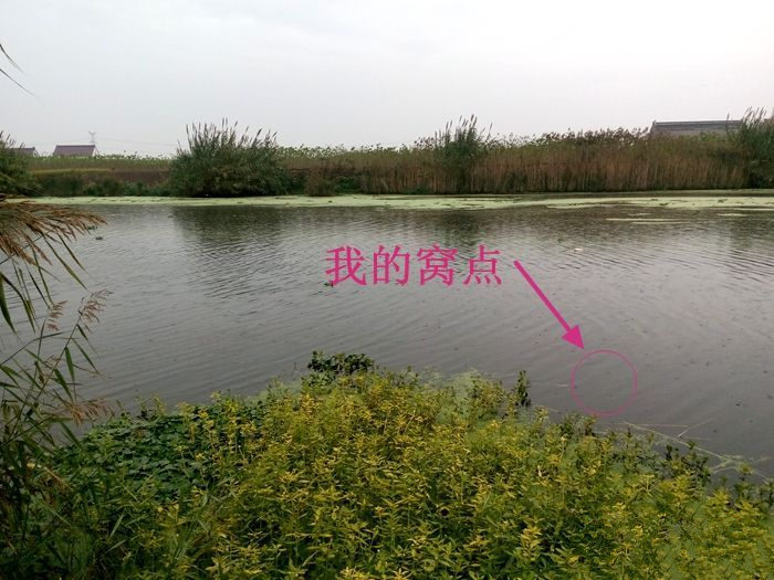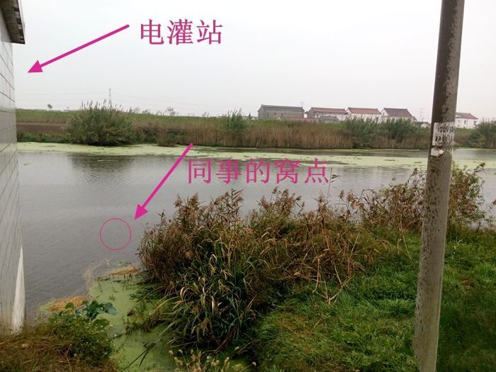 回家简单的吃过午饭,到达然后拿起装备就奔往栟茶河,到达栟茶河已经是下午1点半了,在电灌站的西南角、芦苇前先帮同事打了一个窝。