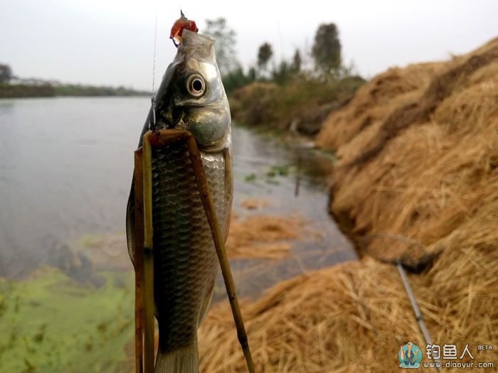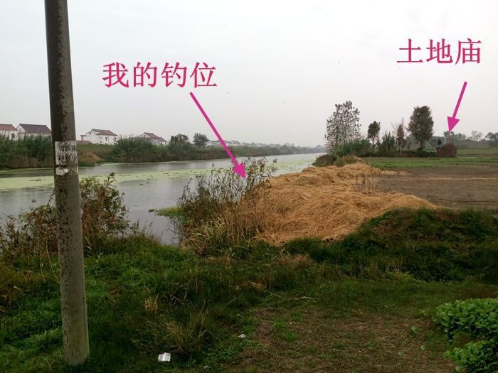 钓位后面都是农民朋友扔的稻草,我站脚的地方全部是稻草。