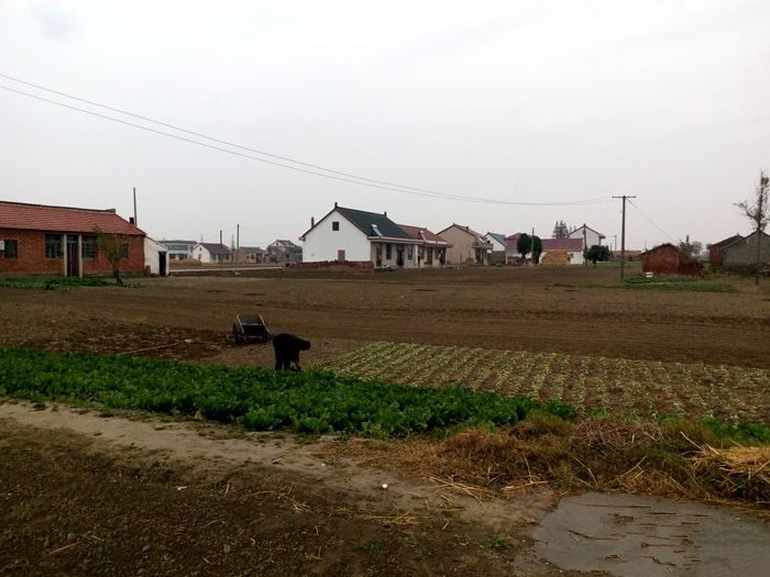 虽然还在下小雨,农民伯伯仍在田里忙碌。