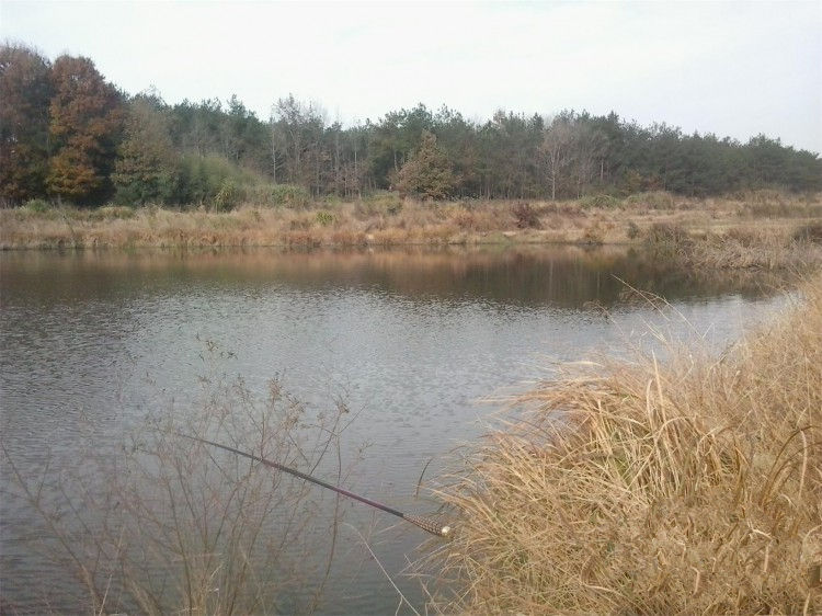 八点钟准时出发奔往枫林野塘,轻车熟路,九点四十多到达枫林野塘,因为是晴天,还是选择西北面的浅滩和水蜡烛旁,打好窝子。今天天气很好,微微的有一点东北风,早晨出来时温度很低,但这会儿在阳光下,人感觉还是蛮舒适的。
