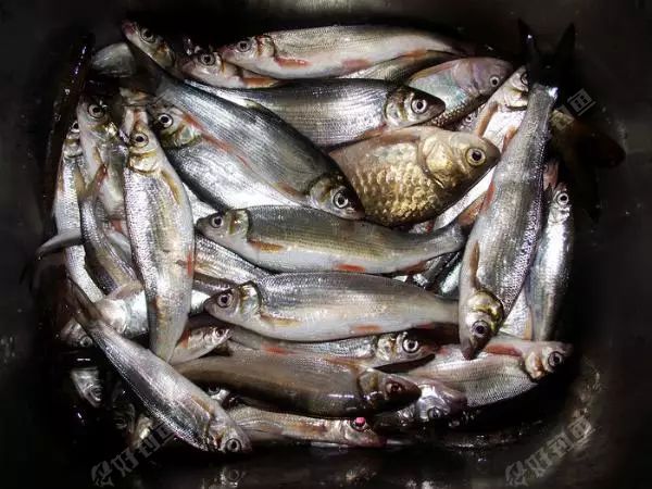 这种鱼一般到七八月时的体积较大,大的二三两,小的不足半两,在河底翻身折射出一片片的银光。只要看到那一片片的银光就打下窝,开好拉饵钓就行了。 我有一次二个小时钓到3斤多这种鱼,这鱼的力道大,有劲,钓这鱼挺好玩。