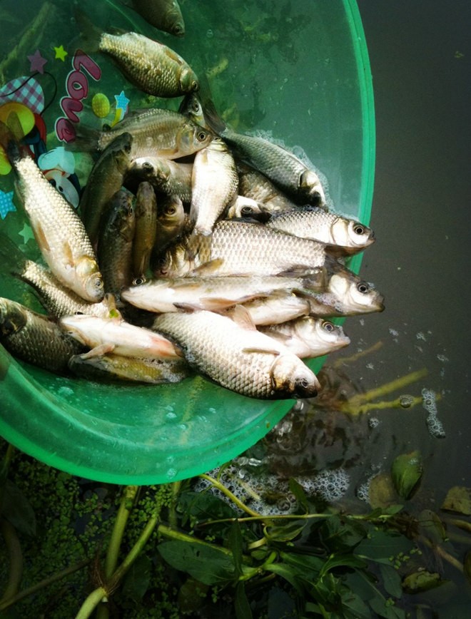 昨天在家里憋了一天,今日8:00从家里出发直奔机场河,急吼吼的赶到河边,有位钓友在一桥东边下方的水泥台上开钓了。偶没着急拿装备,而是顺着河边往南察看以前的老钓位。 【时间】:2016年 8 月 15 日 【天气】:多云, 东 风,气温23℃ 【钓场】:牛首山河 【人员】:nj老枪 【钓位】:翠屏湾花园城段北岸 【战枪】:15尺红狼台钓竿 【线组】:主2、子1,3号赤袖无刺钩,1号达摩浮漂 【饵料】:底窝 神奇酒米 ;钓饵:牛B颗粒饵 【渔获】:鲫58尾。 机场河的水位涨了,河水浑浊,再宽一点就整个一个黄河啦!河堤的草皮都木有嘞,被勤劳的人开垦成菜地了,大雨这么一浇,清秀的机场河就成黄河咯。看这情形搞不成,立马回转,奔牛首山河,牛首山河两岸的植被挺好的,或许水不会这么糟糕吧。 10点到牛首山河,南岸这个时间是找不到位置的,钓友都喜欢到这一段河的南岸钓,这段河的南岸比较平坦,没什么杂草,不管是台钓还是传统都可找到很舒服的钓位,这些钓友都不知道一个小秘密,每周都有人晚上在南岸撒网捕鱼,一搞就是几十斤,我碰到好几回了,因而,偶但凡在牛首这一段玩,肯定在北岸觅钓位。 老钓位还在,只是旁边的草又往中间长了些,用割草刀花了分分钟修整了一下,找好水深后,往钓点打半杯神奇酒米,做好了这些才开饵。 [align=center]