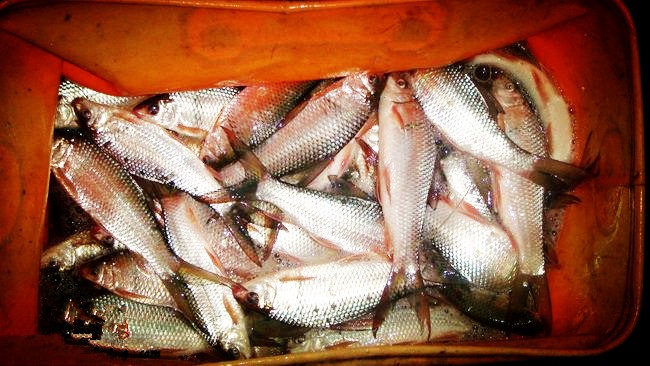 因为日前与朋友钓得不錯,大半天钓了不少土鲮,那土鲮的手感真是好得不得了,于是乎决定相约今天再度造访,想要选个好位,早早便出发,快到八点到位,一个人都沒有,隨便坐。 今日阴转多云南风二到三级,我选择了靠坝头弯角这边的一个较背风的位子,因为弯角是土鲮鱼最喜欢逗留的地方,也是大物经常出没的地方,抄出家什,三下五除二摆好架阵,今天使用十五尺纪洲鲤竿,母线0.8#,子线0.4#,欧娜4#鲫钩。 趁开好的饵没有板结之前打了两团鸡蛋大小的钓饵做窝,开竿后十多二十分钟开始上鱼,虽说阴天多云,但今天的土鲮还是很给面子的,咬口不断,还有双飞多次,只因刚入秋,平时备的子线都不大,最大的才0.8#,前一晚才绑的两包12付0.4#子线,和一包6付0.6#子线的钩全部断完了,最后用上0.8#的子线还断,全日共获半斤左右的鲮妹妹五十七条。 大的一个沒得,郁闷喔! 饵还是原来的配方,化绍新366鲫二份+王永贵阿贵鲫一份+台湾大哥大鲠鱼一份+老鬼纯小麦蛋白一份,饵:水1:1... ... 拉饵钓... ... [align=center]
