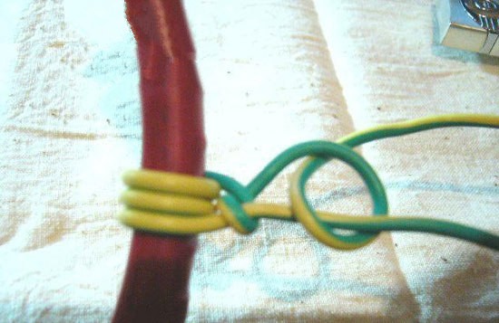 一种鱼线打结法,一直想介绍给大家,可苦于无方,今日用文字叙述,也不知行不行。现以一根鱼线与一小园环打结为例细说如下: 线的一端(线头)始终不动,将另一端(线尾)穿过小环——再穿一下,即线在环中绕俩下,然后用线尾绕线头打结,打好第一个结时要一手拿小环一手拉线头(用点劲)用嘴咬住线尾,两手不动,向小环方摆头把线拉紧。如此打4——5个结,最后一个结穿两下(双结)。要领是一定要保证线头进小环时是直的,不能因打第一个结而把线头拉弯了。 这种打结法是受搬运工的磨盘拉物和船工在码头拴船的方法的启发,也不知大家懂了没有。我用这种打结在弹簧称上基本拉出了德国五彩线的标称拉力,而其他打结是根本达不到他自己的标称拉力的。还有一个很简单的测试打结好坏的方法,就是用任意鱼线进行打结,然后拉断。如果经常是从打结处被拉断,则说明此打结法不合理,在打结处断的频率越高,其结法就越不合理,好的打结基本不从打结处拉断(拉断的机率大概在10% )。 重新补发几个示意照片。手钳子的手把代替圆环,电线代替鱼线。 [align=center]