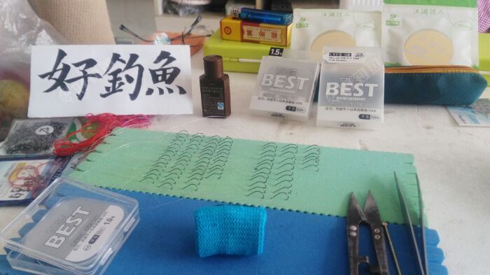 自从繁华用了“好钓鱼”,身边的老友们也都拉下了水、纷纷被吸引过来,不光使用“好钓鱼”手机软件,这不就连鱼线和鱼钩都用上了…… 好友选择了商城中的BEST百世德钓线,绑钩的任务就交给了我……