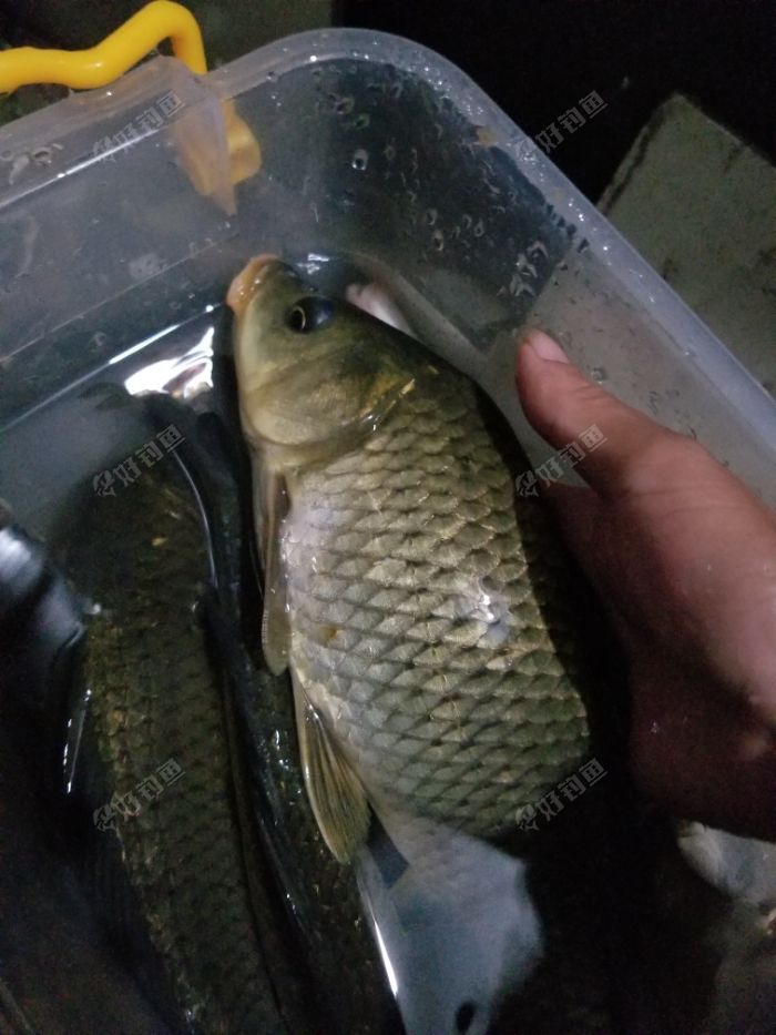 今天在山里安装设备,下午五点多活干完了,旁边有个山塘有鱼,问了一下可以钓鱼,拿起车上的装备开钓,半小时上了几斤鱼,有鲫鱼,鲤鱼,(草鱼,扁鱼不大放了)。天快黑了刚好提到老板那里加餐。好久没台钓了,今天过足手瘾。。