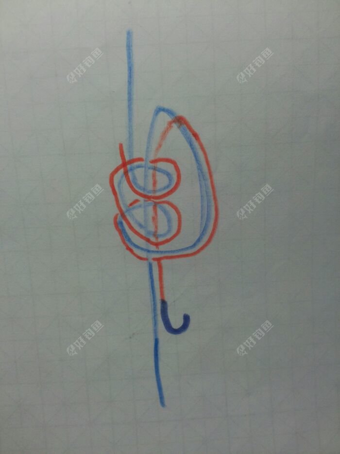 然后将子线和主线如上图缠绕两圈。