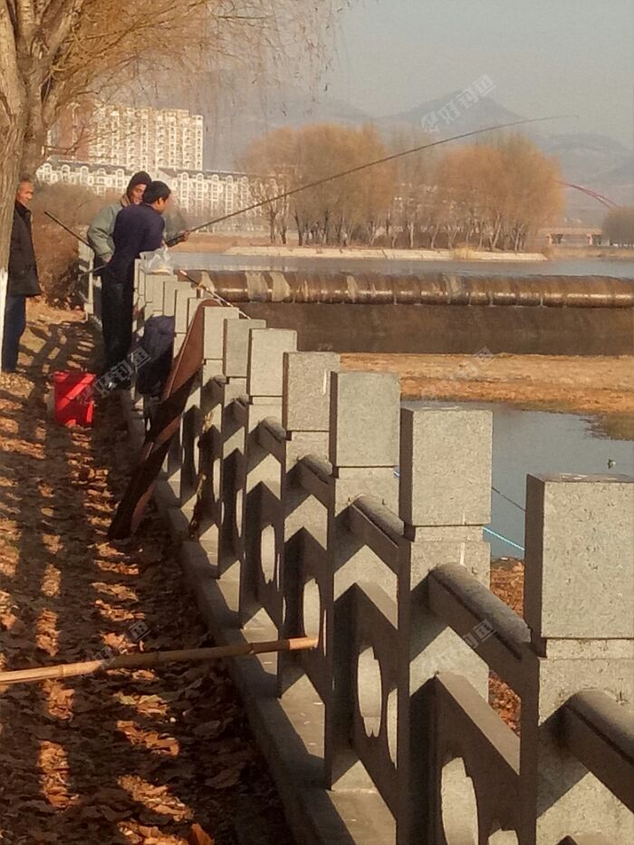 总算整好了,就等鱼儿上钩了。等啊等,等啊等时间过得好快,我们聊着家常,不知不觉快到三点了。 向东看看,有一群老年人在冬泳。他们一年四季都不间断,在这里游泳锻炼身体。