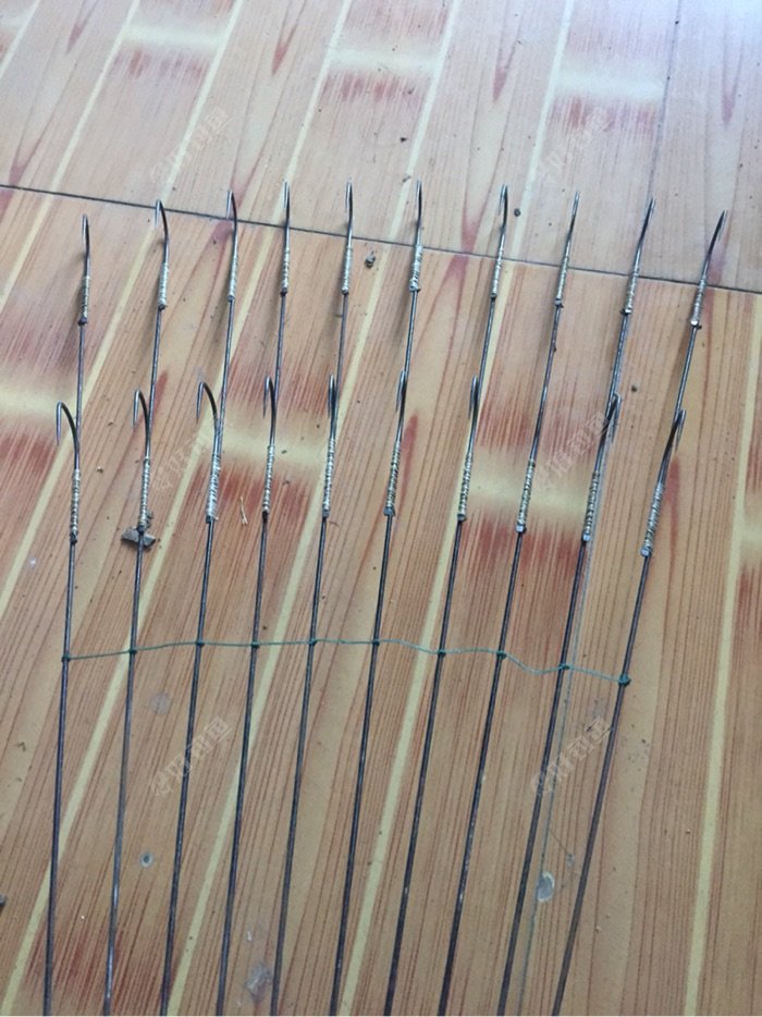 所有的钩都是用尼龙线绑上去的,20个钩绑了整整两个小时,吃了午饭开始组装(没带手套,手都破皮了)