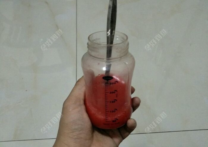 搅拌均匀,这瓶子是闺女小时候用过的奶瓶,一直留着用,上面有刻度,配料很好用!