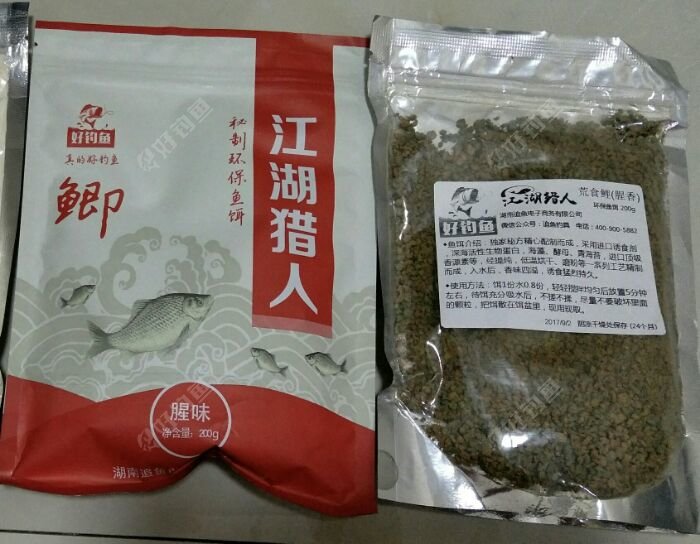 另外加一包麝香王(某宝上6毛一包)和两三勺蜂蜜(超市买的9.9元一瓶,配鱼饵用的,不必高端)。如果钓鲤鱼用红糖代替蜂蜜也不错。