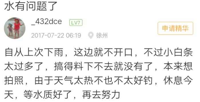 下面重点说一下精华文章的特点,和注意事项, 精华1要求300字3图片 精华2要求500字5图片 精华3要求800字10图片 这些都是硬件条件,必须达到要求,那什么是软件条件那,那就是亮点,我们再说细一点就是你写文章的思想,心里活动,要积极向上,必须是正能量,比如坚持做钓,再比如中鱼时候的激动心情等一些自己的体会感谢,要写在里面,
