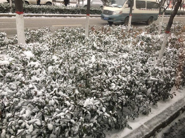 清晨刚一泛亮就看到了雪地上脚印,真是佩服在这种天气还能早起的人。逐渐的,看到了抛洒融雪剂的工作人员,想起上次的雪清理缓慢,很多部门受到了大大的批评,这次都学乖了。