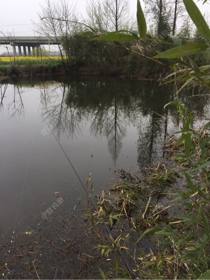这就是我们的钓点,春光明媚,黄黄的油菜花,翠竹掩绿水,白房驻岸边;好一幅美丽的春意盎然的景象!