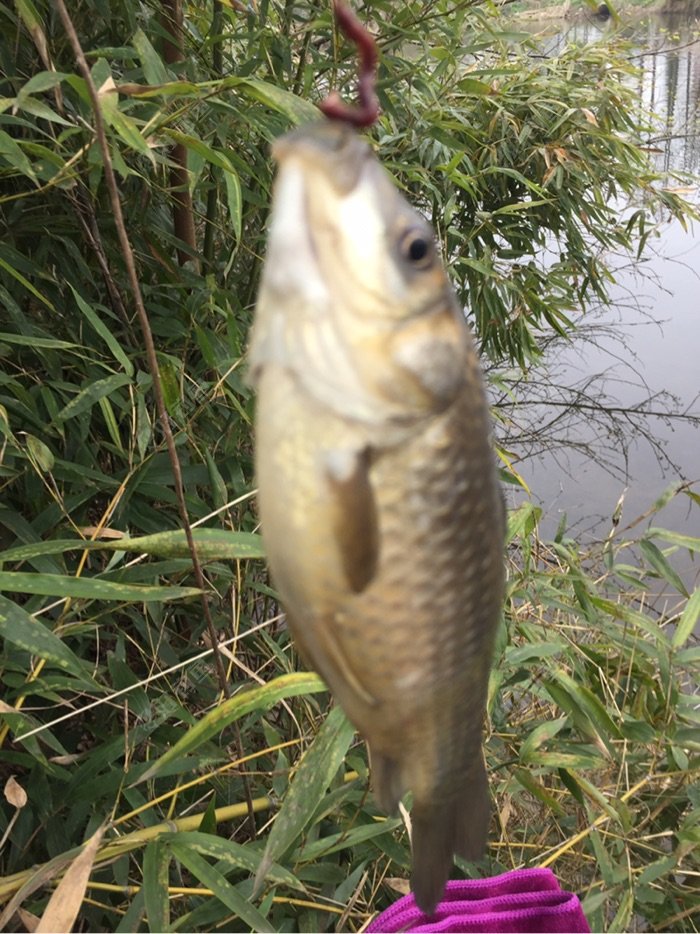 中午开始,塘里的鱼浮起来了,鱼口停了。于是我换到另一边,一个小沟,朋友在这边钓的不错!就这窝他钓了两斤多?一个! 没办法下午鱼口不行了,钓鱼的人都走了,咱也就不坚持了,该天再来。