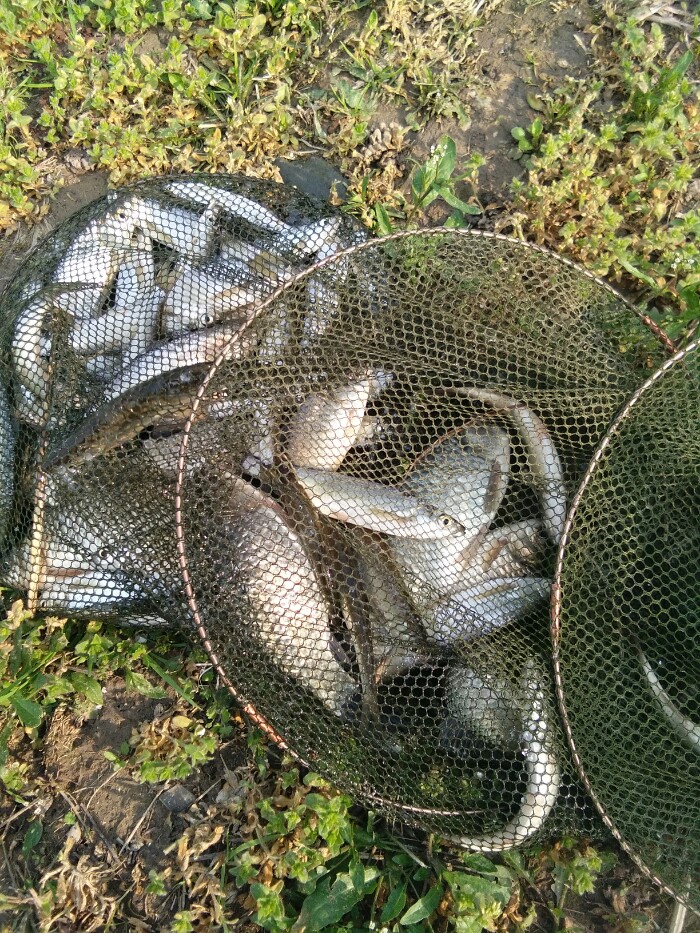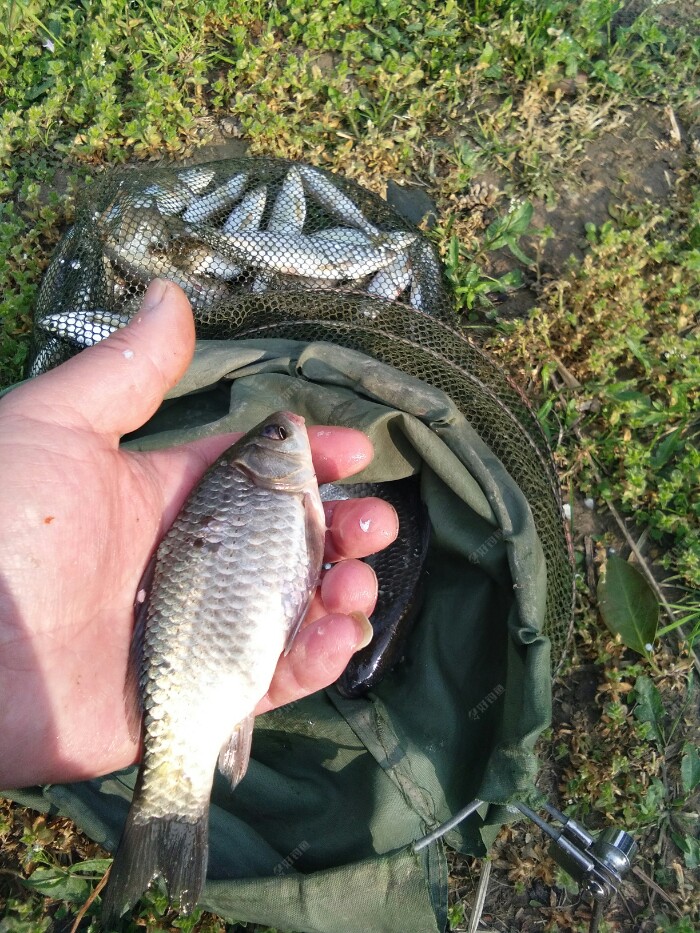 就这样,以白条为主,鲫鱼时不时的光顾一下,穿插着被请了上来。不知是天气原因,还是河道被网工电工扫荡过,今天的鲫鱼很是稀少,上星期鱼的上钩率还是很好的呀。 算了,钓到中午口没了,气温升高也没见鲫鱼上浮,还是打道回府吧。看下今天的鱼获。