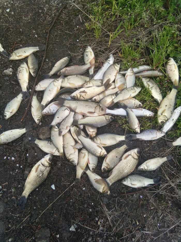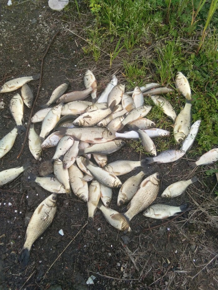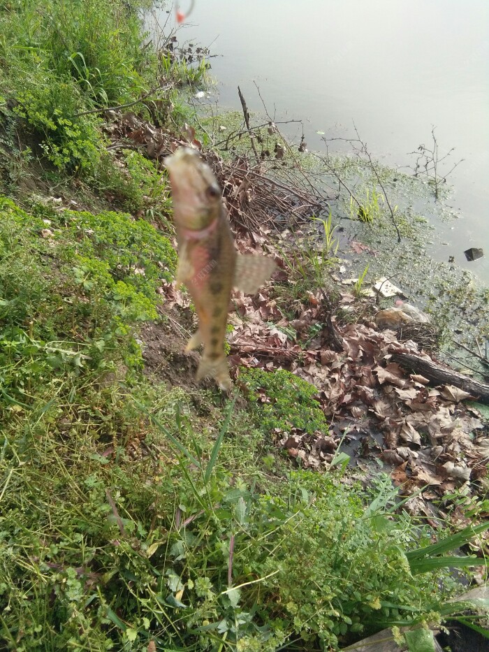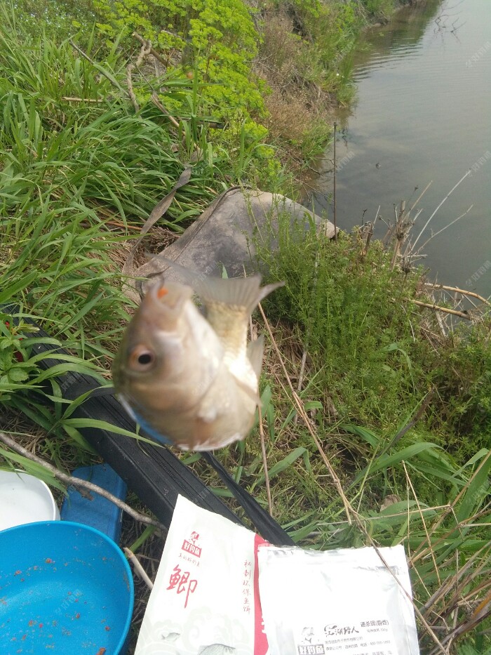 钓了近2个多小时,就上了几条小奶鲫一只虾还有些毛鱼。 还是换钓点吧,开车找了条小河,钓友人不少,下车去看了下,都是小鲫鱼,比刚才钓的大。决定还是在这玩会。 于是选了个靠近马路背风的钓点。