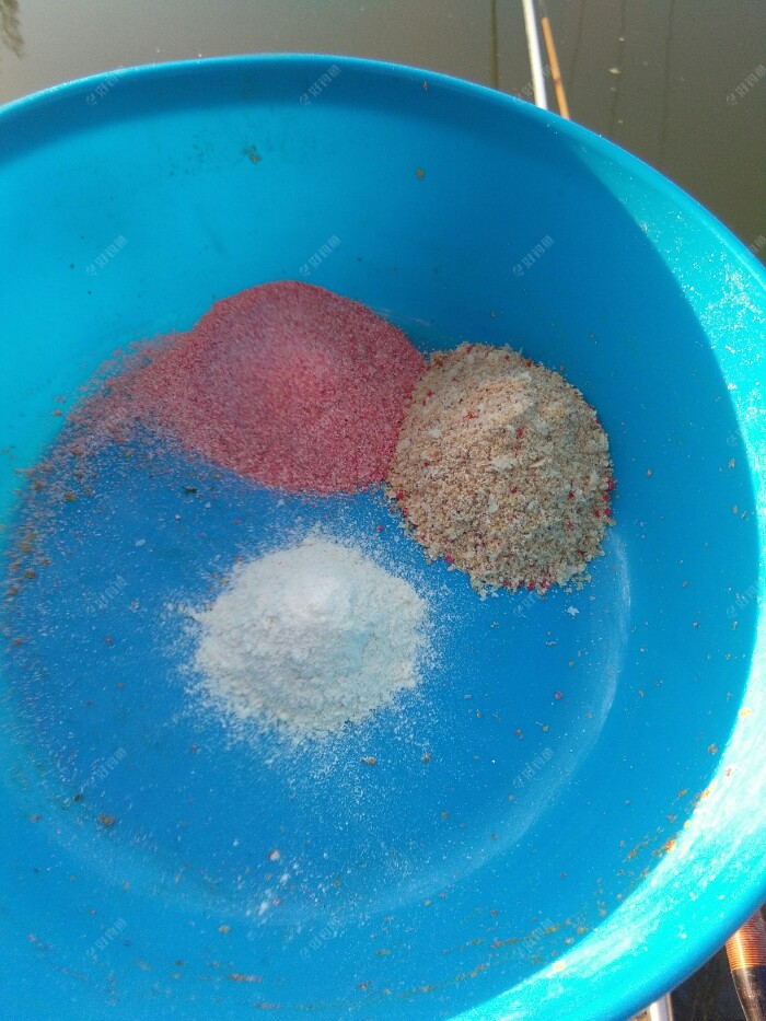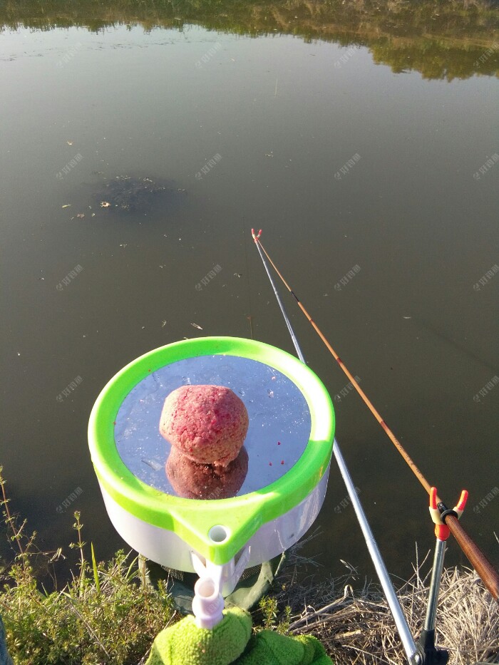 饵料充分的拌和后再用喷过药酒的饵水按1:0·9开饵,然后醒饵等了5分钟再拢成团静置。这时的风比早上大了些,原先平静的钓位水面起了一点波浪。唉,这老天到底想干嘛呀?一会热一会冷,一会北风呼啸,这都是4月份了,叫我们钓鱼人可怎么适应啊。