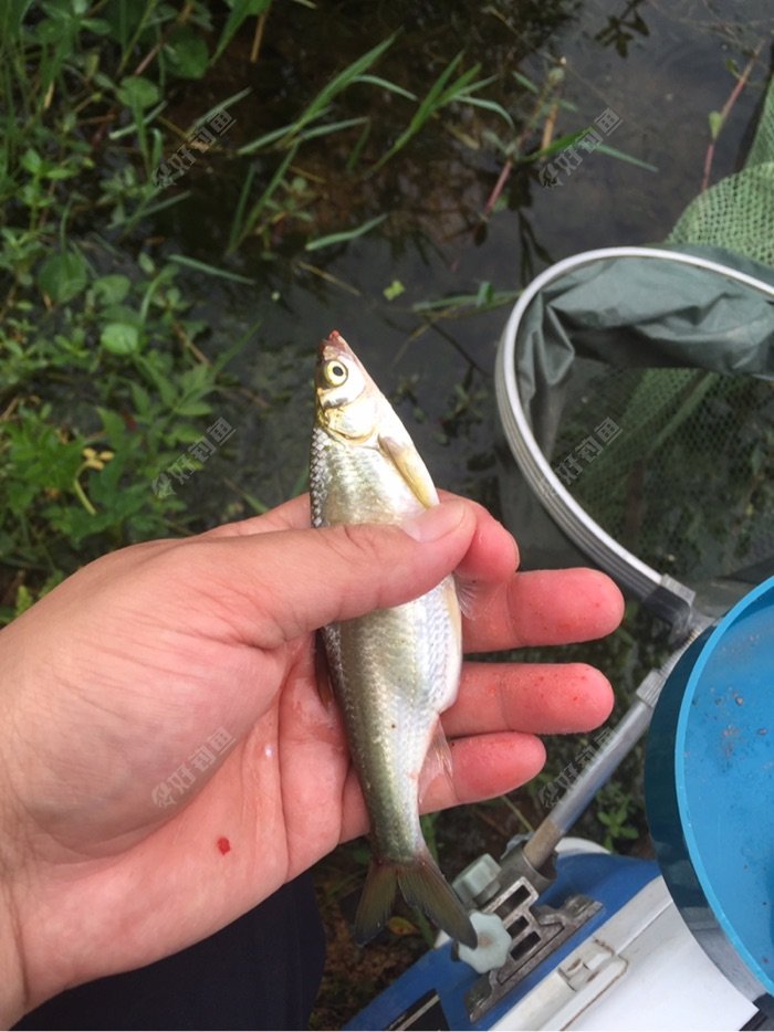 没办法换位置。我来回试了几处,换上4米5,找了一个微微能看清漂,能压水线了。话说回来,就这样过去了一个多小时,定下神来,刚刚那活的兴奋劲全无,独自伤神。 好在十几分钟后,就有口了,打起了精神。开始零星小雨,上了两尾大白条,几尾鲫鱼。