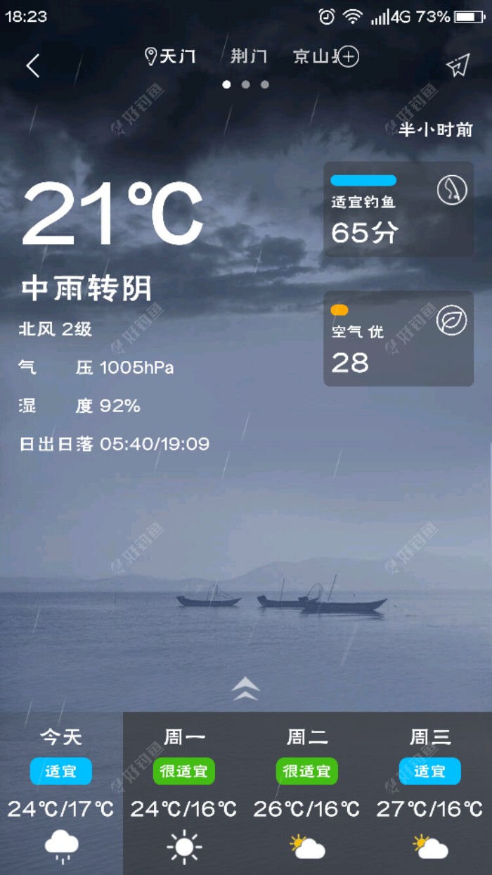 仿佛和200几年的时候一样了,每逢星期六星期日。就是大雨磅礴。有很长一段时间没有发帖了,在家关的要发霉了。看好钓鱼群上的朋友们,发的如此精美的帖子和那么漂亮的鱼获,心想,今天无论如何,也要出发钓鱼,不为别的,只为钓鱼人,一往无前的精神。天空乌云密布。早上起床时,暴雨一阵阵的下。出发的时间定在了九点。约上一起钓鱼的朋友,开上车。果断地出发了,今天这个钓点属于中型水库,鱼种非常丰富,听说这段时间,有翘嘴出没?我最喜欢钓的也是这个鱼种,找到一处还算避风的地方。精心的为鱼儿开好了饵料,其实今天准备的,还是有所欠缺,打开钓箱才发现,平常用的腥饵用完了,没办法,所以今天只好,突出香的原则,采用了,疯钓鲫,三份,超诱一份,和干里香一份,果酸小药,四季调节状态。我想应该还不错吧。做钓初期口不是很好,但是我始终坚持以频率为主,不管有没有鱼口,稳定在20秒钟,到30秒钟左右一杆,通过不断的抛竿诱鱼,窝点逐渐开始聚起鱼儿,翘嘴开始一条接一条的上来了,还有非常好的土叼子一个都快二两了。到做钓的后期。鱼口渐渐慢了下来,于是我又采用飞铅打全泳层搜索的方法,逐渐的突破了瓶颈期,全天基本上鱼口不断。到下午4点左右收竿鱼货,大概有八斤左右,以翘嘴居多,一斤左右的鲫鱼,还有其他鱼种。应该收获还算不错,想想自己这么严酷的天气,还能出发钓鱼,我想,一个钓鱼人的精神,也正是在这里体现吧,还有就是像这种天气,雨水和微风,给水中的鱼儿很好的溶氧量,鱼口可能比平时正常天气要好。希望下星期,有个好天气,可以继续。